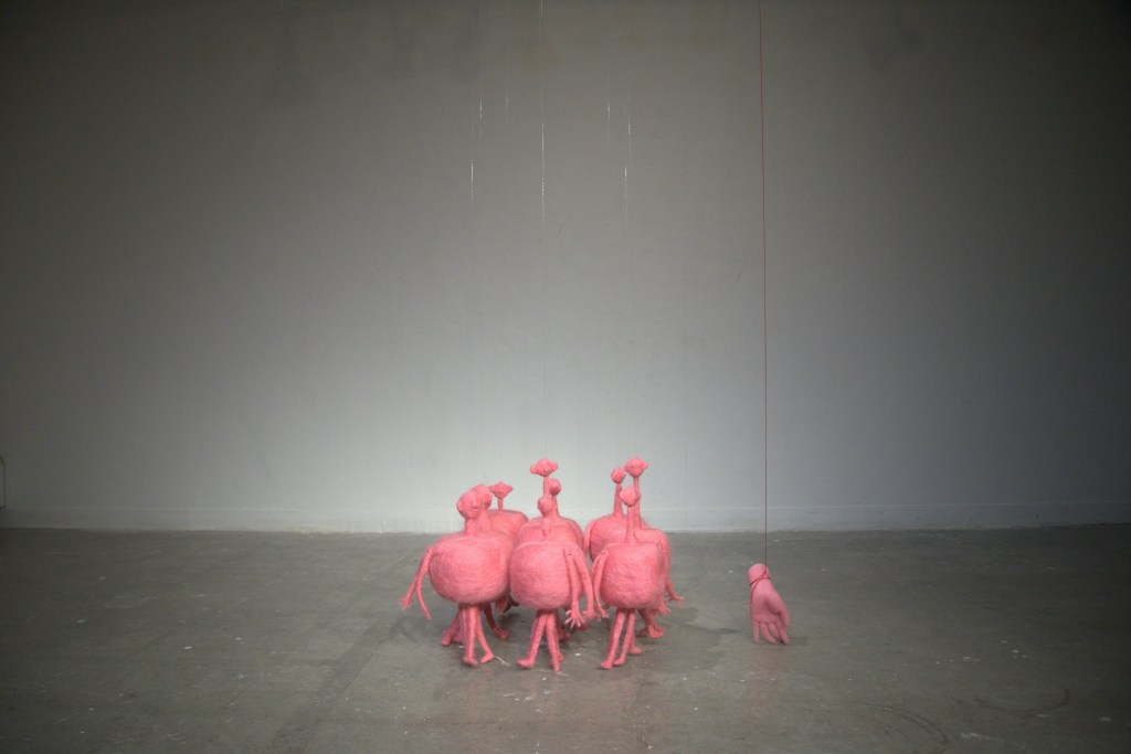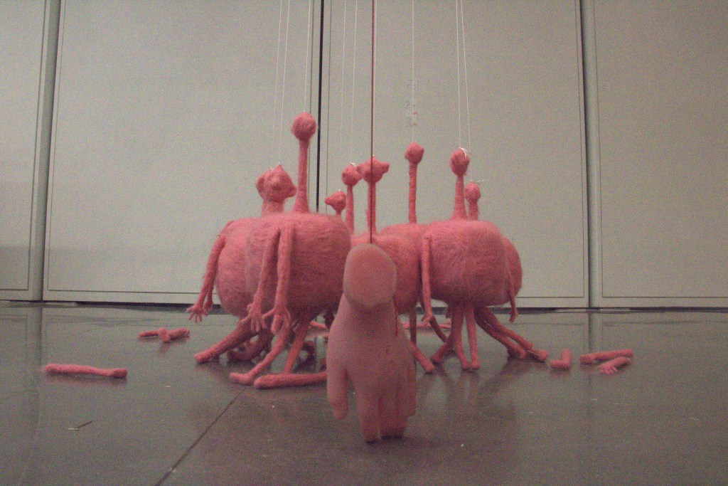 These figures have two faces, four hands, and four feet, inspired by Plato’s Symposium. They represent the original ‘complete humans.’ When we step outside of a human-centric viewpoint, as another group, our perception of them may be tinged with mockery or disdain.