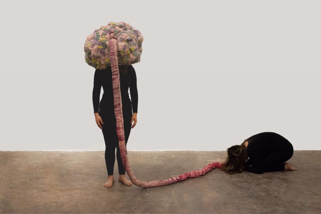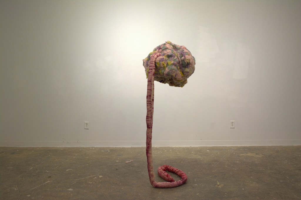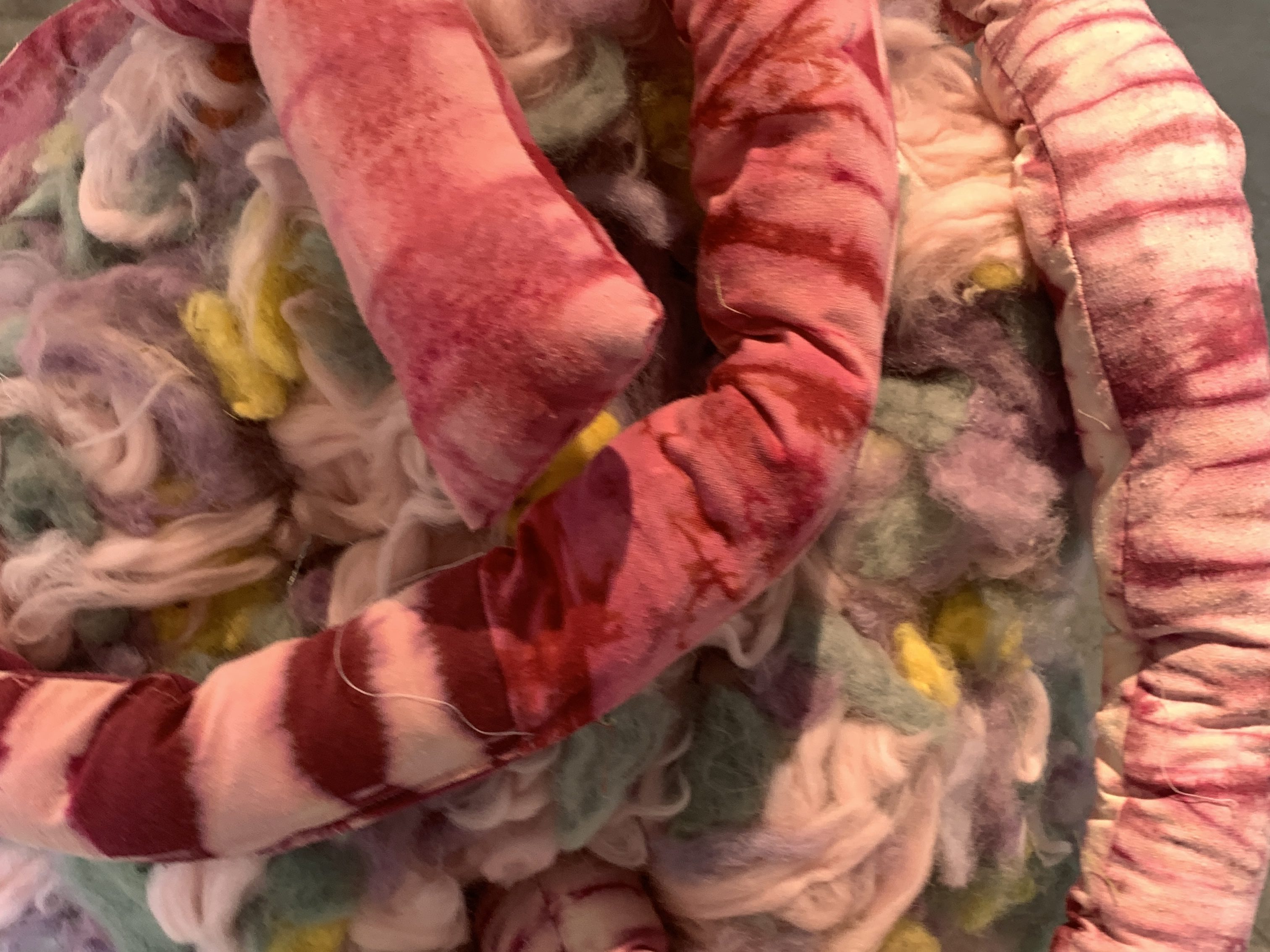 Dyed fabric, dyed wool, chicken wire, paper; 3 ft. x 3 ft. x 3 ft.; 2022.