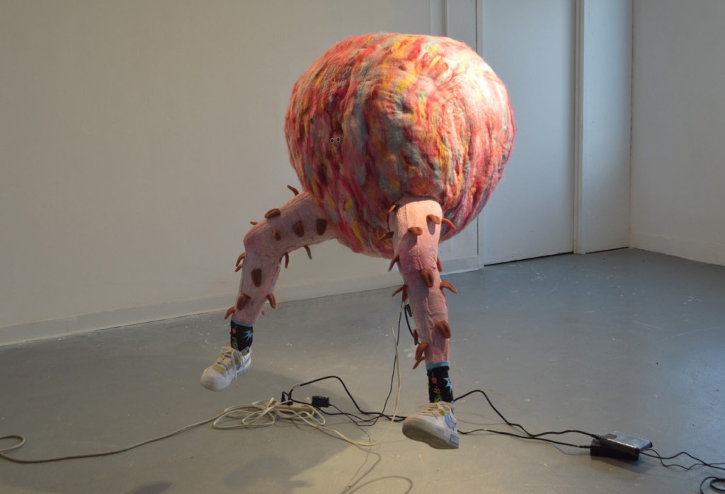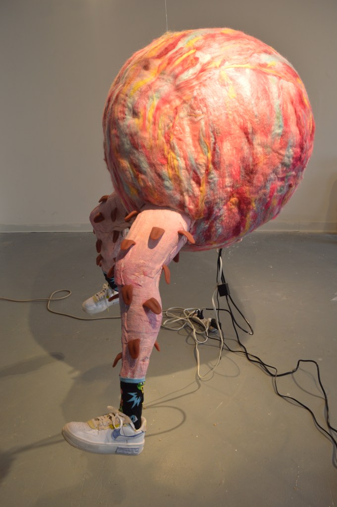 Foam, wool, plaster sheet, motor, sound, founded object; 4 ft. x 4 ft. x 5 ft.; 2023.